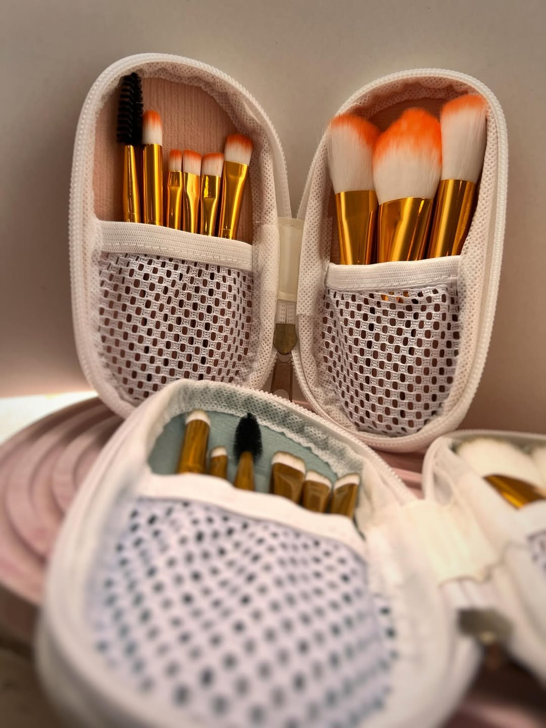 ست براش کیفی مسافرتی دارای ۹تا براش کاربردی و مفید . کیف چرمی . موهاش ریزش نداره دسته هاشم جدا نمیشه ثبت از و سایتکیفاشم دو تا رنگ داره صورتی سبز
